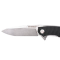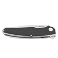 Samo rezilo, z dolžino 10,5 cm, ima matiran kamen prane površine, ki ne samo da izgleda odlično, ampak tudi povečuje površinsko odpornost. Luskice ročaja so izdelane iz visokokakovostne Micarte z drobnim vzorcem za boljši oprijem tudi v težkih pogojih. Aksialni ležaji zagotavljajo gladko delovanje noža, medtem ko žlebljena linijska ključavnica zagotavlja zanesljivost. Zgornji nazobčan rob rezila služi kot opora za palec za natančno in trdno rezanje.