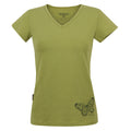 Majica s kratkimi rokavi BUSHMAN ATHENA na prvi pogled poskuša poudariti eleganco in pustiti izstopati čudovitim ženskim oblinam. Celoten kroj majice, vključno z V-izrezom, je zasnovan tako, da poudarja eleganco. Majica je tudi zelo udobna za nošenje, v njej se boste počutili dobro in samozavestno. V spodnjem levem delu sprednjega dela majice je okrašena z metuljem (v svetlo zeleni barvi) ali z zmajčkom (v barvi lagune) in v obeh primerih z napisom BUSHMAN.