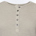 Ženska polprozorna majica z dolgimi rokavi je izdelana iz 100-odstotnega bombaža, naravnih vlaken, tj. dihajočega in vpojnega materiala. Elastičen vratni izrez je zaključen z zavihkom s petimi gumbi, ki nimajo le praktične funkcije, ampak so tudi zelo dekorativni. Majica je zanimiva tudi zaradi okrasnih šivov, učinkovitega oprijema sprednjega dela na epoletah, oblikovanega spodnjega roba ali rebrastega roba, ne le na vratnem izrezu, temveč tudi na spodnjem robu rokavov. Majica ima povsem edinstven videz tudi zaradi pigmentnega barvanja in encimske tehnologije pranja. Je udoben, prijeten za nošenje in se dobro kombinira.